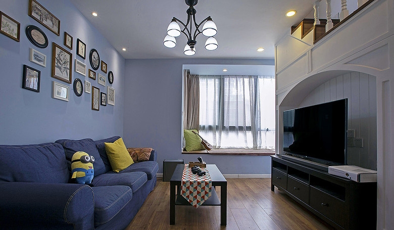 案例說明 本案湖藍色為主色調,搭配深色家具和淺色布衣沙發配飾,柔和的色調,為生活帶來寧靜的感覺。棉麻的窗簾總感覺有一股高貴范,并且帶著濃濃的文藝氣息,如今原生態的生活色彩日漸厚重,為家里添置上幾件棉麻物件兒,盡享棉麻夏日 “森”呼吸。